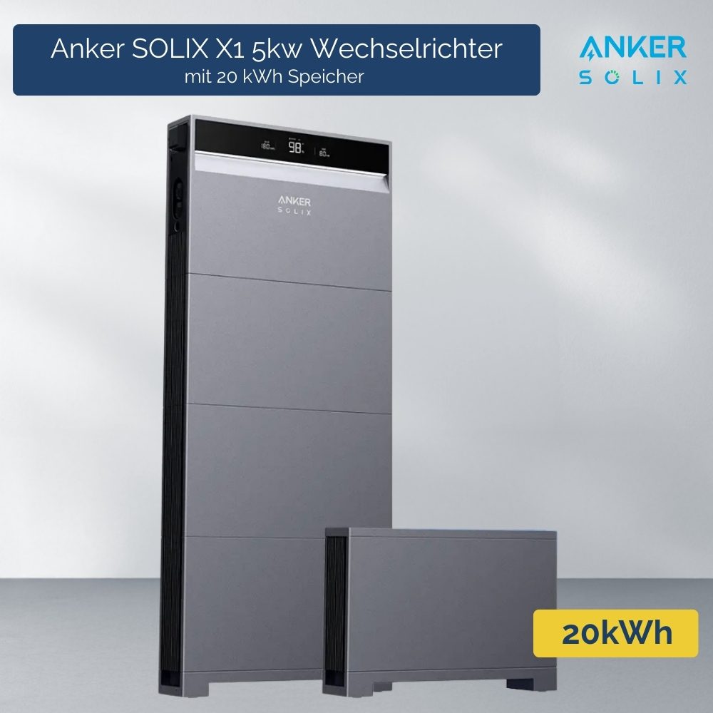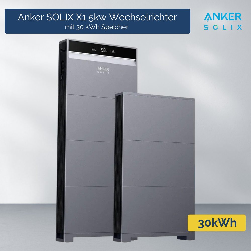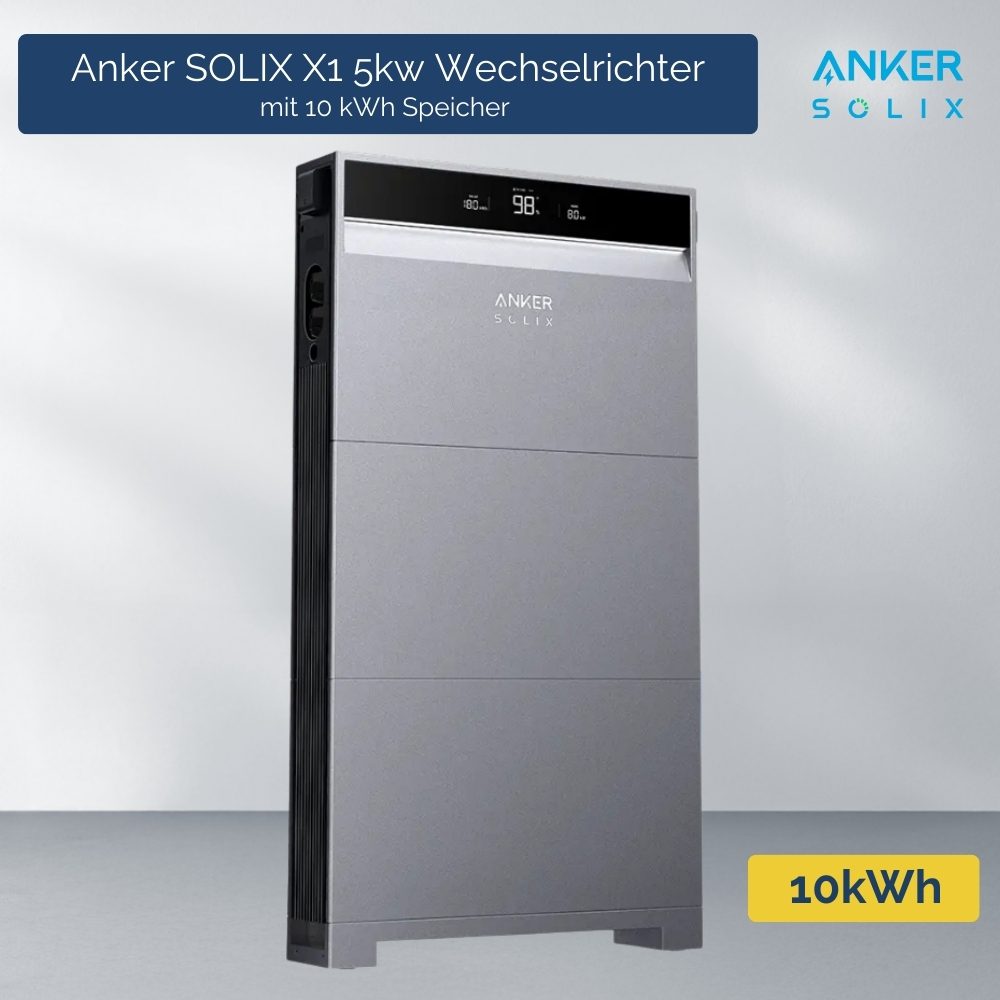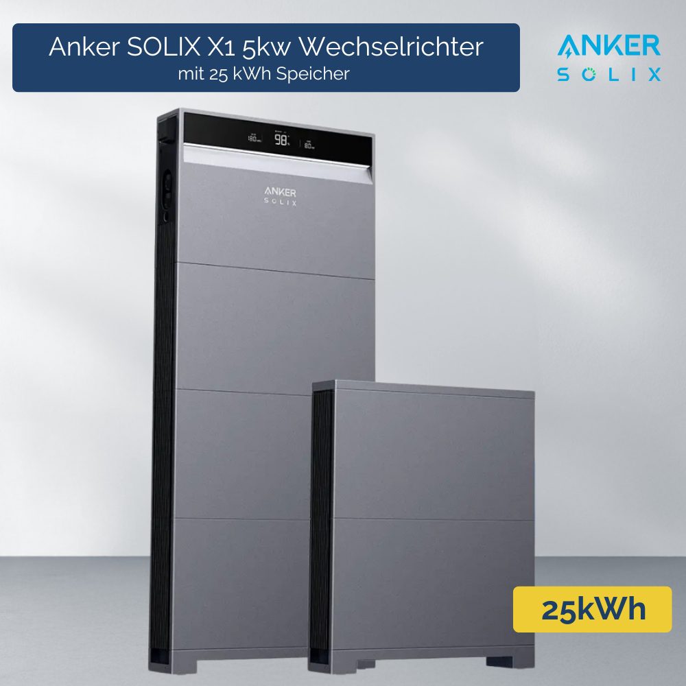 Das Anker SOLIX X1 Energiespeicher-System kombiniert einen dreiphasigen 5 kW Hybrid-Wechselrichter mit erweiterbaren LiFePO4-Batterien von 5 – 30 kWh. Dank bis zu 98 % Systemwirkungsgrad reduzieren Sie Verluste und senken Ihre Stromkosten nachhaltig – perfekt für Ein- und Zweifamilienhäuser.