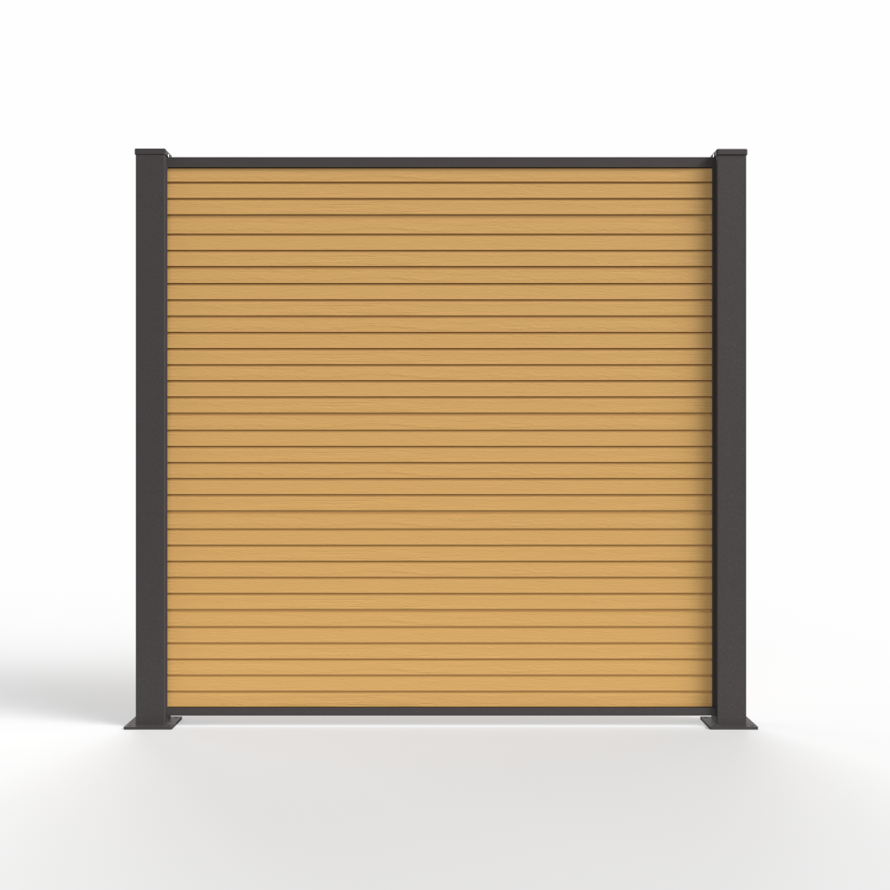 Designauswahl: Die FlexPVence Zaunelemente sind in vier Designs erhältlich. Ob in Cedar, Aluminium, Gray oder Teak – passen sie die Optik der WPC-Lamellen ganz einfach Ihren ästhetischen Ansprüchen an, um ein optimales Gesamtbild zu erzielen.