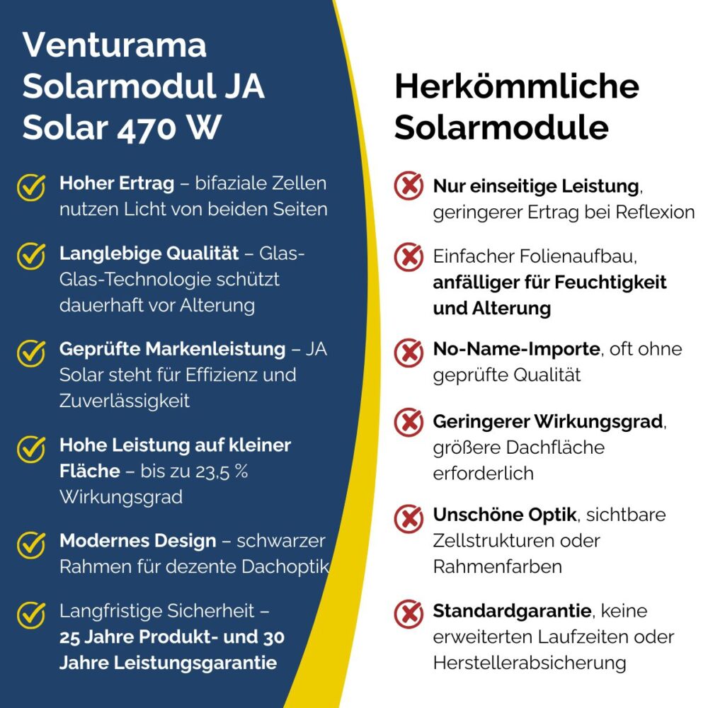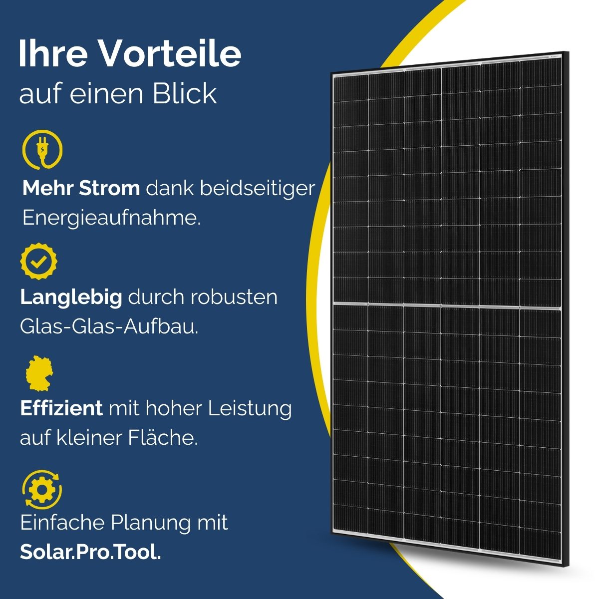 - Hoher Modulwirkungsgrad bis 23,5 % (modellabhängig)