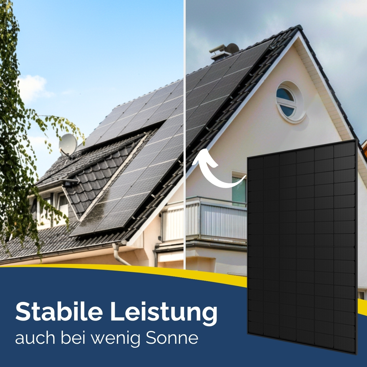 - Stabil bei Hitze: Dank verbessertem Temperaturkoeffizienten (−0,28 %/°C) geringere Leistungseinbußen bei höheren Temperaturen.