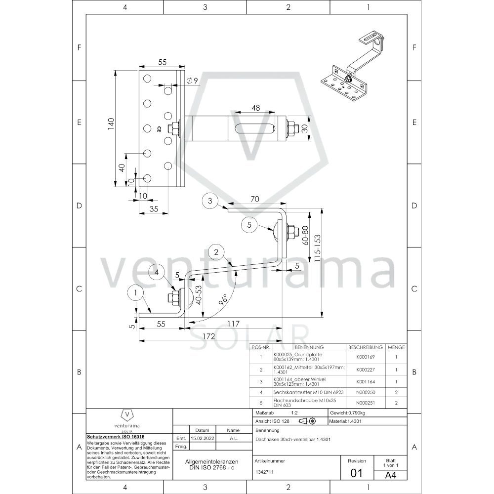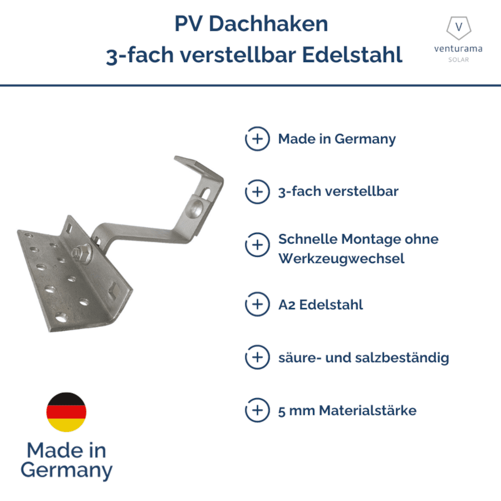 V8 D+ 3-fach verstellbarer Dachhaken für Ihre PV Anlage